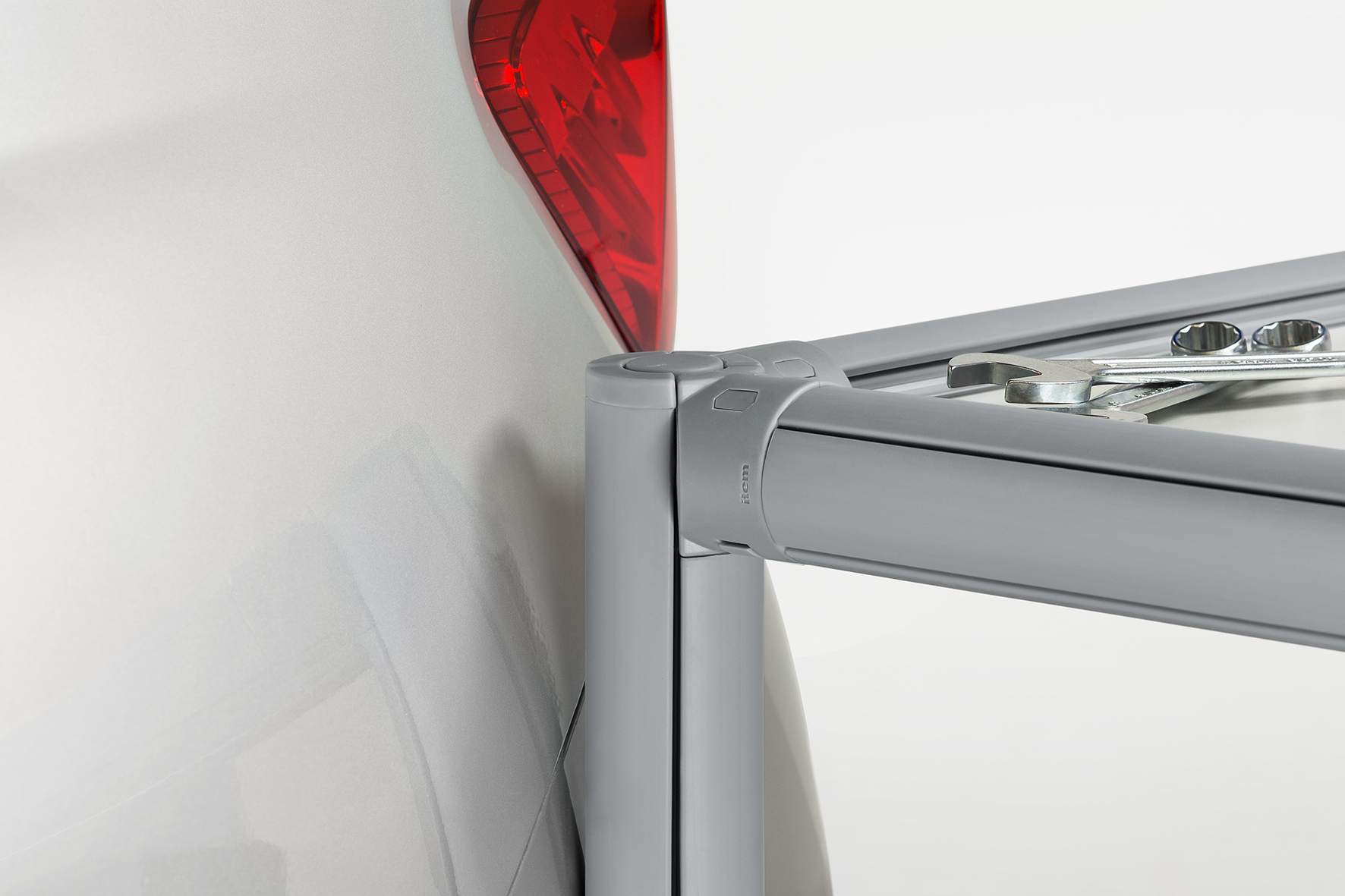 D30 aluminium profiles and fasteners can be assembled to build sturdy constructions for lean production. As the market leader in building kit systems for industrial applications, item is constantly developing new components to optimise production processes and reduce costs. For instance, the new Protective Cover R28 for Fastener D30 provides scratch protection and can be retrofitted. It comprises two half shells that securely clip together, completely covering the Fastener D30 with no tools required. The Protective Cover can be attached to all key intersection points and easily removed again. When combined with Protective Cap D30-9 and Protective Profiles D30, it helps provide all-round protection, as the protective components encompass tubes and fasteners with a flush-fitting covering. Protective Cap D30-9 R28-90° is available for free-standing profile ends. Protective Cover and Protective Caps are also available in optional ESD-safe designs.