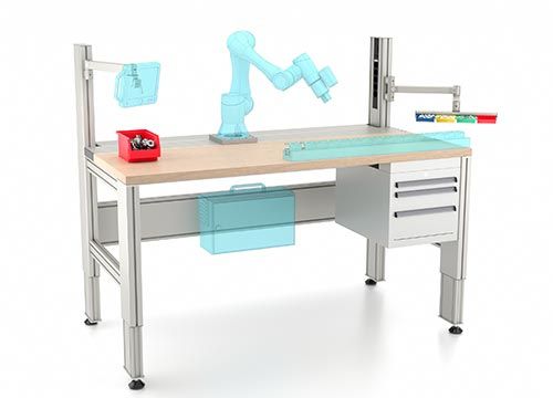 Vyberte kategorii Všechny (78) Regálové systémy (5) Rámy a kryty strojů (18) Pracovní a montážní stoly (8) Ochranné oplocení (6) Automatizace (7) Schodiště a plošiny (2) Mobilní zařízení a vozíky (2) Lean Production (8) Robotika (15) Čistá výroba (0) Rozšiřitelný pracovní stůl pro integraci kobota EX-01239 Dokonalý i pro dodatečnou montáž – tento pracovní stůl s poloviční výškou a svislou částí lze rozšířit mnoha způsoby. V první řadě lze desku stolu z vrstveného buku doplnit o odolný ... Zjistit více Základní pracovní stůl pro kolektivní spolupráci EX-01238 Spolupráce přímo u pracovního stolu – základní pracovní stůl je vstupní branou do světa společných pracovních stolů. Tímto způsobem mají jak pracovník, tak robotické rameno pl... Zjistit více Společný pracovní stůl s bohatým vybavením EX-01237 Dokonalá spolupráce – tento pracovní stůl ve známém prostředí WBS se čtyřmi elektricky ovládanými výškově nastavitelnými zdvihacími sloupky je v zadní části vybaven odolným profi... Zjistit více Mobilní sloupek pro kobota s možností složení EX-01235 Stabilní během práce, úsporný na prostor během přepravy – tento kobot je upevněn na mobilním rámu a je ideálním doplňkem školení a veletržních expozic. Díky tomu ho lze přeprav... Zjistit více Načíst více Můžeme Vám osobně poradit? Najděte kontaktní osobu! Žádost o projekt Pomůžeme Vám při plánování Vašich projektů. Individuálně a vysoce efektivně. Kontaktujte nás ihned! Konfigurace Individuální, jednoduché, časově neomezené on-line plánování. Konfigurovat nyní! Online shop Vždy pohodlné a snadné objednání! Zadejte svou objednávku! Do online shopu!