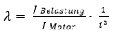 The mass inertia ratio λ (lambda) is the ratio of driven mass (rotating and linearly moved mass) to the mass inertia of the motor.